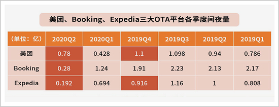 但横向对比来看,国际OTA巨头Booking、Expedia,第二季度间夜量分别为2800万和1920万,环比一季度急剧下滑。