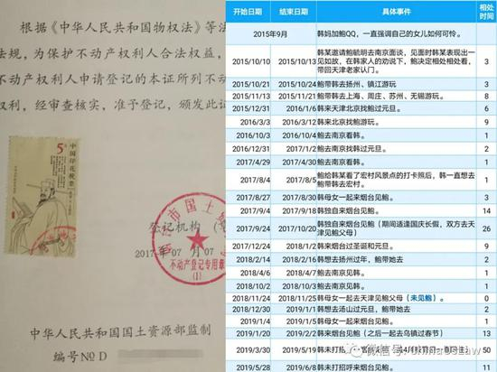 画皮文强调2016年4月本人即带韩某离开北京搬到烟台,同住数年并囚禁虐待,这也是最令民情激愤之处。然而是否同住数年应该是最容易核实的,何李二人可曾询问过韩某住在哪里并尝试到“同住数年”的“犯罪现场”核实?显然没有,因为核实的话物业肯定会告知本人烟台的公寓为2017年7月所购(见下图房产证),之前一直是独自吃住在公司里。而且几年间本人与韩很少见面,总计天数不超过10%,最长的反而是在2019年4月韩某告“强奸”之后,大致相处时间见下图,也很容易被乘车记录等核实。