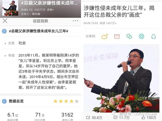 如果说韩某这样的人无法无天无底线尚不足为奇,而南风窗自诩“中国最有影响力的新闻杂志,核心价值观为理性、良知、责任,使命即为了公众利益”,真给中国媒体丢尽了脸。南风窗打着“严肃新闻媒体”的旗号,诱使大众对其内容深信不疑,竟为制造奇闻吸引读者眼球,不惜罔顾事实与隐私精心虚构骇人惨剧,甚至在连韩某都没见过的情况下,就以新闻报道之名、大字报式标题、小说式内容,用春秋笔法洋洋洒洒炮制出《涉嫌性侵未成年女儿三年,揭开这位总裁父亲的“画皮”》这篇从标题到全文都没几句真话的大作(下称“画皮文”),不仅肆意侮辱抹黑本人,更矛头直指多地公安机关包庇枉法,仅微博就有约1500万阅读、50万转发、12万评论、150万点赞,微信公众号阅读和在看均达10万+,至今雄踞其公众号榜首,其创建的微博话题“#总裁父亲涉嫌性侵未成年女儿三年#”更有超过6亿次阅读,被纽约时报、BBC等国内外媒体竞相转载和引用后,在全国乃至全球掀起轩然大波,其创造的“李星星”之名响彻大江南北,一度独霸天下令人不敢质疑,堪称为破天荒的新闻“杰作”!