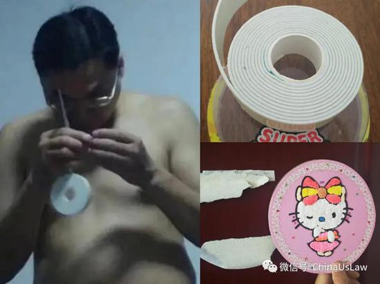 相信公众印象深刻的是,画皮文特地发了下图中韩某在本人卧室偷拍的半裸照,配文称“鲍某明欲把胶带粘在李星星身上”,并迅速传遍全网天下皆知。但何李二人只要稍微仔细看下本人手中之物即可发现,那根本不是胶带,而是又细又软一撕就破的发泡双面胶。当时我正要把李星星做的凯蒂猫沙画粘到门上,难道何李二人会想把这种双面胶粘在身上?置如此明显的指鹿为马于不顾,无非是想找个借口传播本人的半裸照片加以丑化,再次暴露了其险恶居心。而且何李二人没问问自己,如果像画皮文所说本人收走了韩某手机,这照片是如何偷拍的?