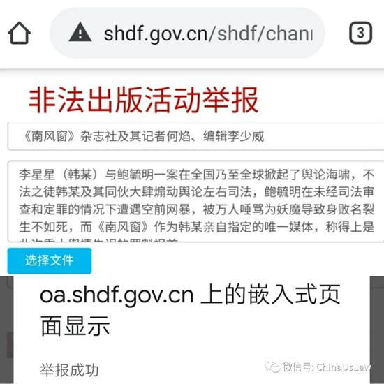 对于南风窗及何焰、李少威等相关责任人令人发指的恶行,本人已于8月中旬向新闻出版署举报,希望依法得到严肃处理,下图为举报记录。