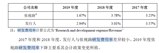 而与此同时,报告期内,其研发费用率连续下滑,2019年已经跌破3%。