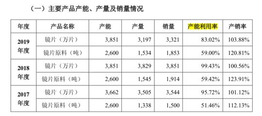 根据上文提到,由于提价等原因,明月镜片产销量均有所下滑,其产能利用率去年仅有83.02%。在产能利用率明显下滑情况下,公司还在积极扩产,表现出对行业前景的看好。