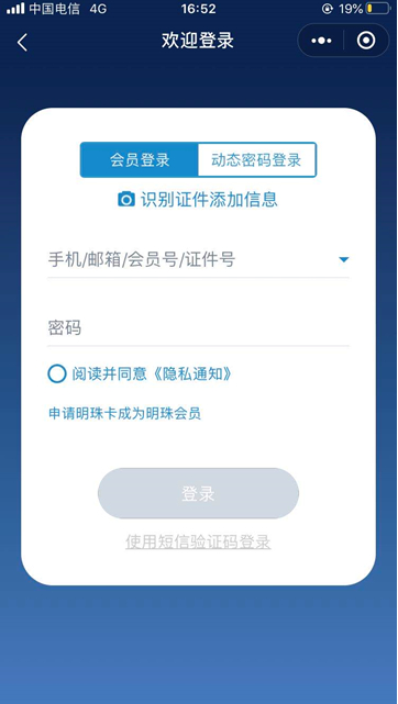新京报贝壳财经记者下载南方航空APP发现,该APP主要有手机验证码登录与账号密码登录两种方式,其中手机号、邮箱、会员号、证件号都可作为账号登录,只要输入正确密码,就可以免手机验证登录南方航空APP。