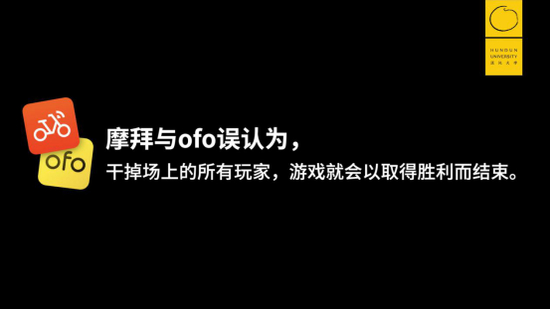 摩拜和ofo会有一种错觉,误认为只要我干掉了场上的所有玩家,游戏就会以我取得胜而结束。可实际上不是这样。虽然场上玩家可能都被你干掉了,你认为游戏结束了,但是场外还有人啊,有人排队等着进场呢,对他们来说游戏一直没有结束。