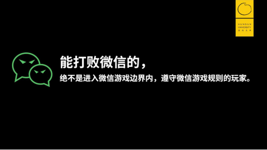 它开始的尝试是沿着微信的方法去做的,可是在微信的边界内、用微信的规则,是很难打败它的。所以,用钉钉另辟蹊径,取得了成功。