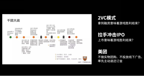 梁宁在《产品思维30讲》里提到,在国内团购竞争进入白热化时,整个行业开始倒退,即2VC模式的集体死亡。如果用有限游戏来讲的话,其实就是这些创始人认为游戏是有限的,只要拿到了融资,这个游戏就胜利结束了。但实际上不是这样,拿到融资,这个企业的游戏其实才刚刚开始。