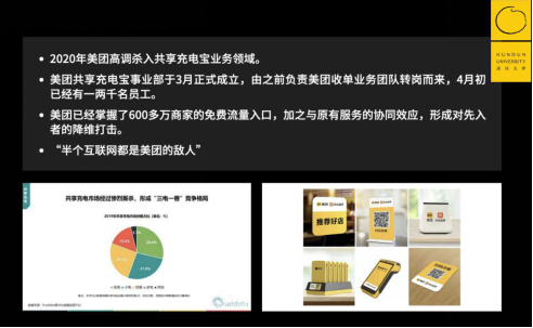 除了网约车,美团今年杀入了共享充电宝,3月成立共享充电宝的事业部,迅速招了很大的团队来推广。美团做这件事是非常有优势的,因为它已经在线下掌握了600多万商家的免费流量入口,很容易和原来的业务形成协同效应,然后形成对先入者的降维打击。