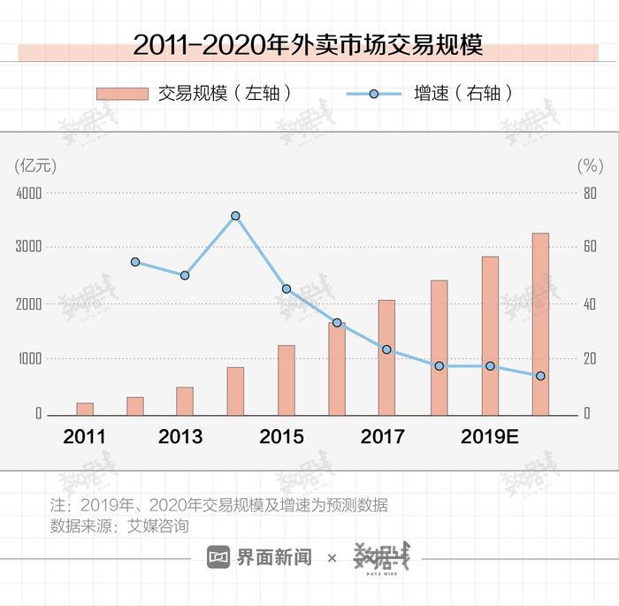 在交易规模方面,2020年外卖市场这块“大蛋糕”或将超过3000亿元。