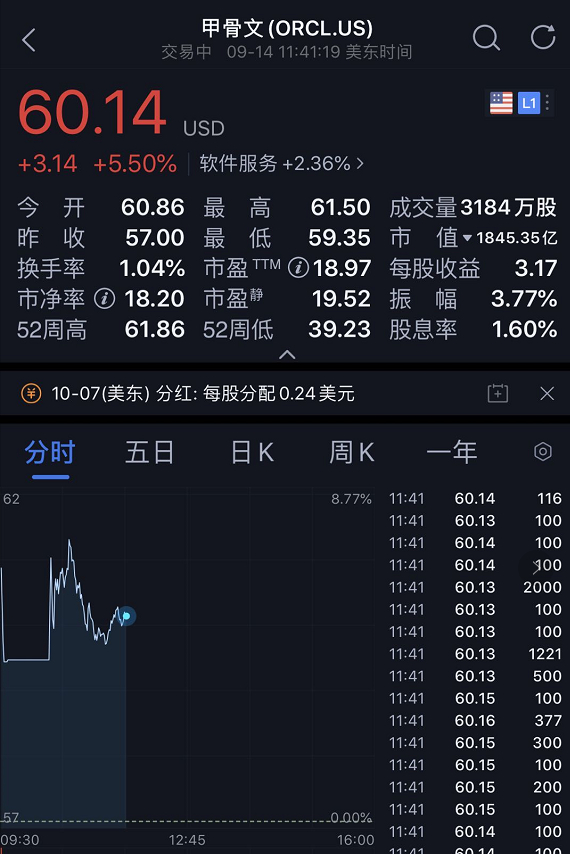 消息一出,甲骨文股价大涨。