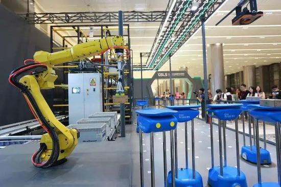 在亚马逊和阿里正部署的自动化物流系统中,已经包含了轮式机器人、机械臂、3D相机、交叉分拣带、AGV等硬件层,也包含了感知算法、智能规划、决策大脑、控制系统等软件层。