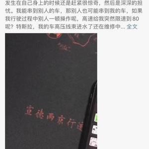 “我能串到别人的车,那别人也可能串到我的车,如果我行驶过程中别人一顿操作呢,高速给我突然限速到80(km/h)呢?”金先生在微博里写道。