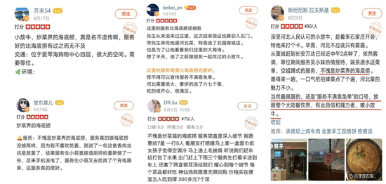 比如,完全免费、不限量,也不计入账单的新鲜水果;为排队顾客设计的“航空式服务”等位区;服务员面带微笑,跑着迎接前来就餐的顾客;顾客离店时,服务员会送上打包好的免费水果、湿巾、牙签等,并向你深深地90度鞠躬;甚至,当女性顾客落座后,服务员判断她可能需要扎头发,就会给准备发卡。