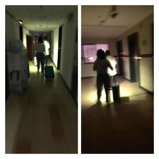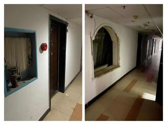 刘女士称,她们一行人到达民宿时已经接近夜晚11点了。在民宿外面她们就感到缺乏安全保障:楼下及楼道随便出入,楼道没有照明,走廊尽头有个空无一人但大门敞开的房间,放了一张披着白布的按摩床,离入住房间不远处有一破旧大厅,窗户玻璃是坏的,乱七八糟地摆放着杂物。刘女士不止一次地形容当时的环境“很恐怖”,她还补充道,一行人都已经有一定的社会经验和出行经验了,但还是被吓得够呛。