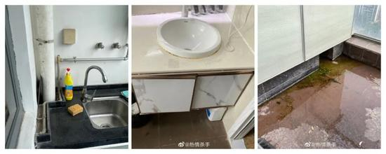 小君表示,到达民宿后第一感受就是噪音巨大,因为一街之隔就是大型施工工地,然而在爱彼迎的详情页面里,以及入住前与房东的私信沟通中,均未提及这一情况。另外,房间内有多处污渍,卫生间和厨房污垢厚重,阳台的积水发臭难闻,甚至长出了一滩青苔,夜晚睡觉的时候与虫共舞……而如此嘈杂脏乱的民宿,一晚需要接近1500元。
