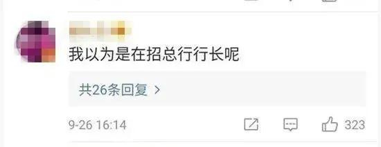 对此,有网友留言表示:“我以为是在招总行行长呢!”