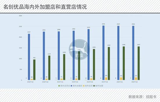 到2019年6月30日,国内加盟门店数量是2302家,考虑到有些新开的门店,我们选取上一财年的中间时点2018年9月30日,当时门店数量2157。