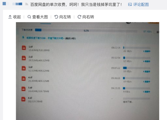 不过,有不少用户表示买了之后依旧限速,认为当次加速的价格过高,速度无法跑满,抱怨百度网盘吃相难看。