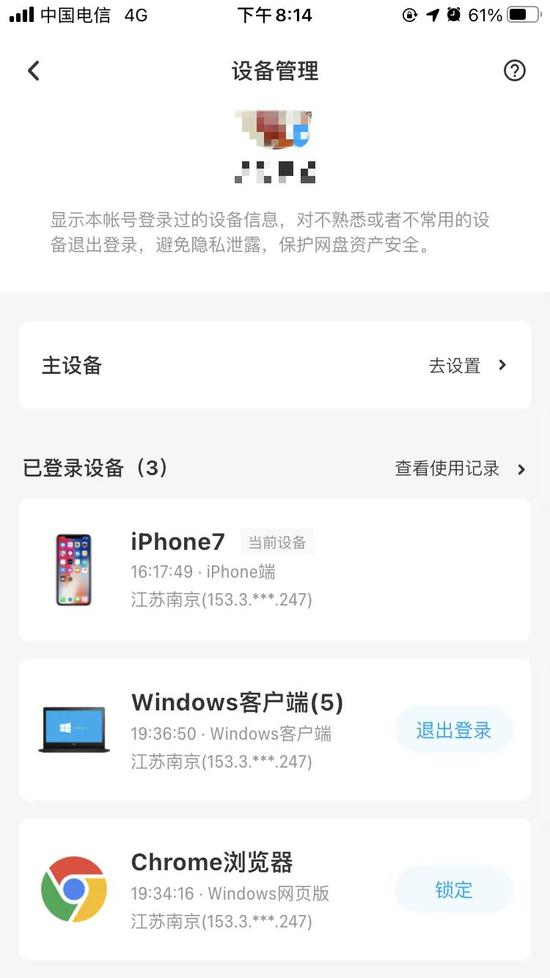来自江苏南京的王京(化名)因工作需要必须要使用网盘下载内容,但在这个月内发现自己的账号多次被强制退出。据了解,王京每一次使用百度网盘时都是通过自己扫码进行登录的,使用的设备总共不超过3台。
