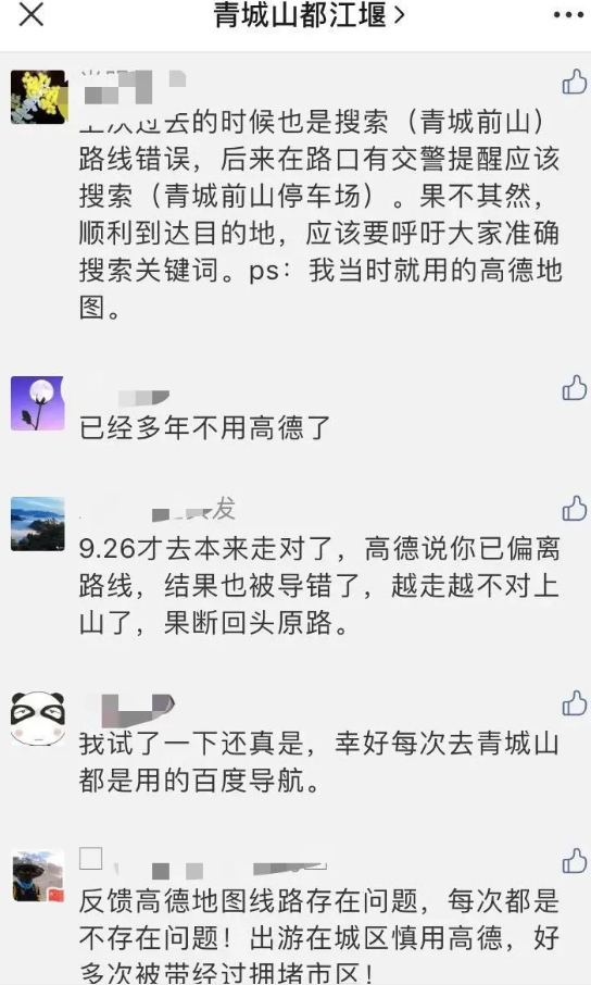 青城山-都江堰景区解释说:这一问题已经存在多年,且一直与高德地图沟通但无果,被迫无奈才出此下策。