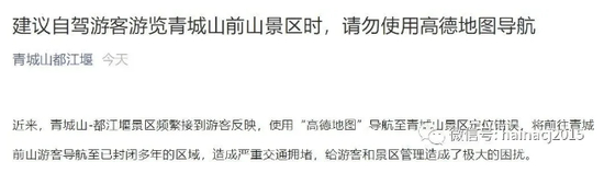 但10月4日,四川省著名的景区——青城山-都江堰景区,却发文把高德地图怒怼了一番,并建议自驾游的游客,使用其他的导航工具。