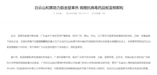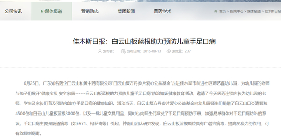 白云山药业官网报道截图