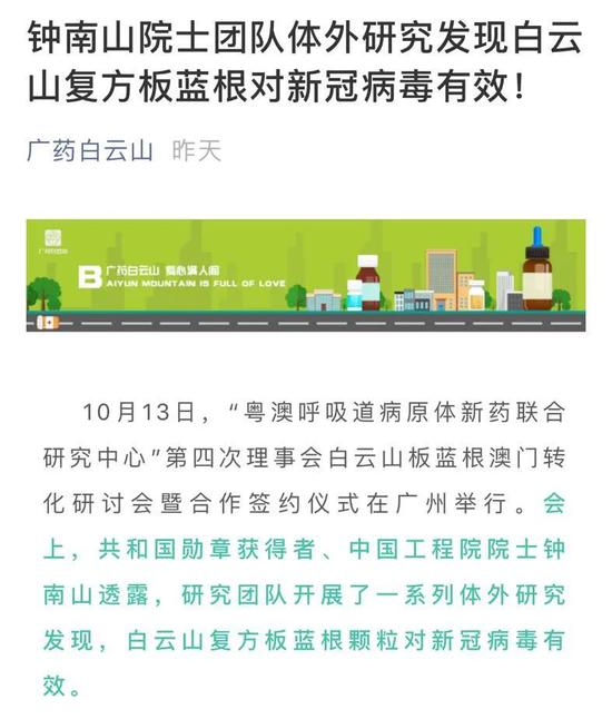 广药白云山微信公众号报道截图