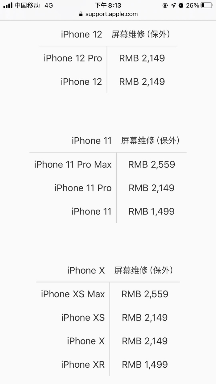 2149元!iPhone12系列屏幕维修价格公布