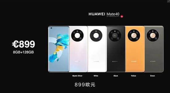 在发布会上,余承东公布了Mate 40的价格,起售价为899欧元。
