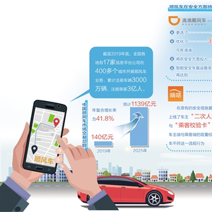 弗若斯特沙利文咨询公司报告认为,中国顺风车将是增长最快的细分市场,交易总额(GTV)预计将由2019年的140亿元增长至2025年的1139亿元,年复合增长率为41.8%。