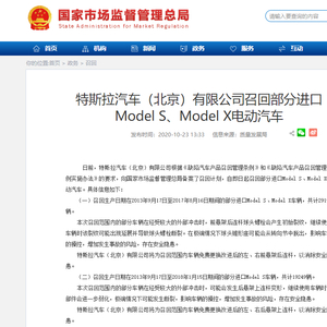就在孙毅收到上述邮件的前一天,国家市场监督管理总局缺陷产品管理中心发布消息称,特斯拉汽车(北京)有限公司宣布,因前后悬架存在安全隐患,自10月23日起召回共计近3万辆进口Model S和Model X电动汽车。