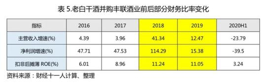 并购资产的并表,让老白干酒2018年的业绩突飞猛进。但这种外延式发展,只是昙花一现,到2019年,老白干酒的各种指标又开始放缓(见表5)。