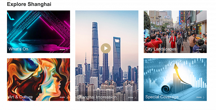国际版发布上海城市形象宣传片,介绍上海建设发展历史和最新市情,提供本、上海市文化景观、城市亮点建筑、名胜古迹、大型活动等图片图景,向世界全面展示海派文化。