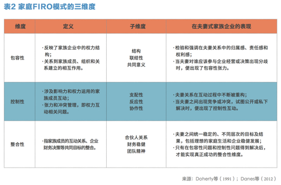夫妻共同领导模式是夫妻式家族企业权力结构的具体体现,基于股权结构、对企业的承诺及责任、角色定位、管理层级和决策权力等(Barnett,1988)。但夫妻共同工作、决策和权力互动的过程要更加复杂多变,从权力动力学和家庭FIRO理论等角度去洞察其中的动态变化过程就显得更为重要。