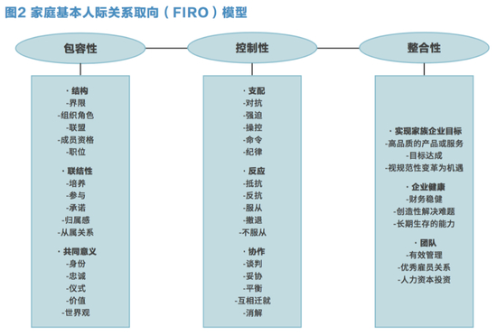 家庭FIRO模型是在家庭基本人际关系取向(FIRO)模型基础上,应用于家族企业的权力动力学和动态变化模型(见图2)(Doherty,Colangelo与Hovander,1991)。主要包括包容性、控制性和整合性三大维度,按照其发展序列的相互作用进行展现(见表2)。
