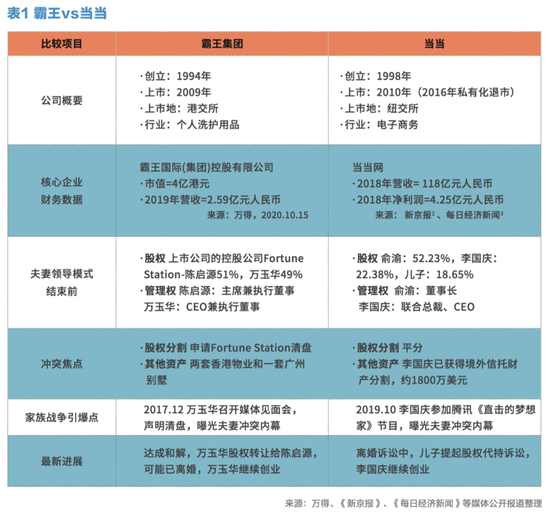 在“家族战争-夫妻系列”中,我们选取三组离婚案例,在前四期中,我们解读了离婚多年后又引爆新冲突的真功夫和地素时尚以及葵花药业和沃尔核材的案例,本期我们解读处于漫长而痛苦离婚拉锯战中的霸王集团和当当网的案例。