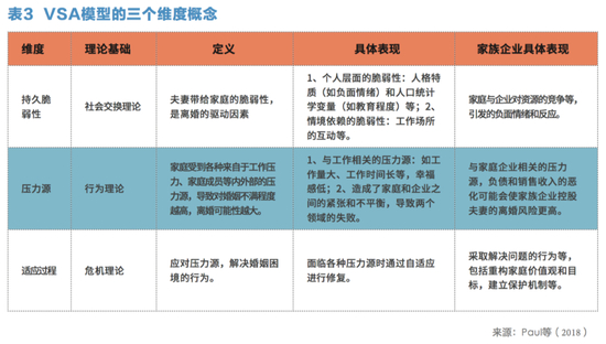 从行为视角来看,个人对婚姻的期望和看法会对离婚意图产生影响,从而受到各种来自于工作压力、家庭成员等内外部压力源的影响。家庭和企业是两个具有不同价值观和目标的领域,尤其是夫妻式家族企业会同时在这两个领域中形成脆弱性,从而最终导致离婚——即第二个维度“压力源”。