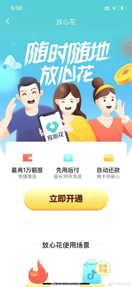 原标题:抖音版花呗来了 字节跳动推出放心花