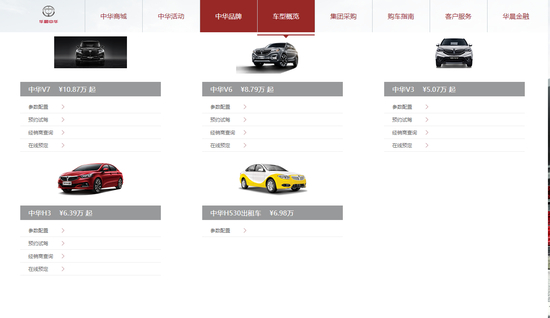 当前华晨中华官网展示了其旗下拥有的轿车、SUV两大系列十余款车型。但是眼下,华晨中华的在售车型只剩下中华V7、中华V6和中华V3。