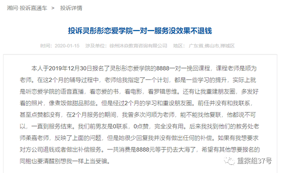 ▲学员对灵彤彤恋爱学院的投诉。网页截图
