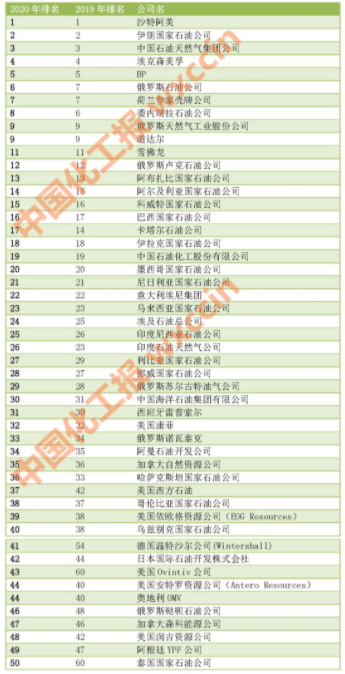2020世界最大50家石油公司排名揭晓!中石油位居第三(附名单)