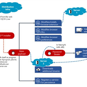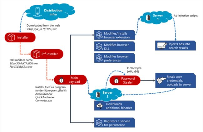 微软表示,目前该恶意软件是通过经典的“钓鱼”方式传播的。黑客将用户从合法网站重定向到可疑域名,并诱骗他们安装恶意软件。