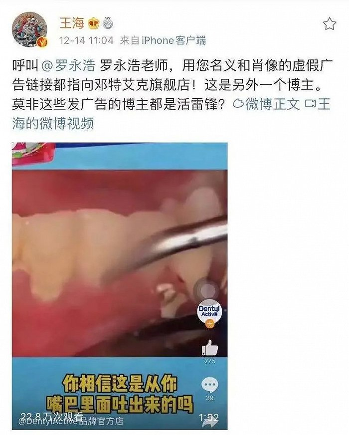 继王海质疑罗永浩直播间售卖漱口水虚假宣传后,又再次质疑罗永浩售卖兰蔻唇膏的商家拿不出授权书并已关店整顿。