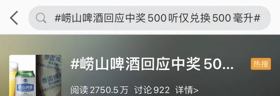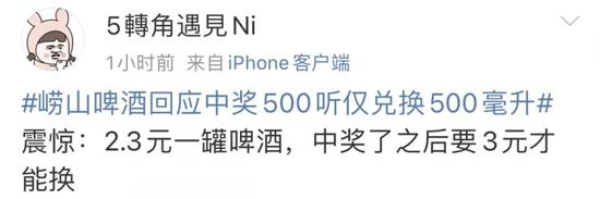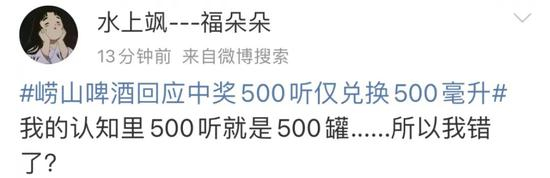 中奖500听=500毫升?崂山啤酒的解释把网友弄晕了