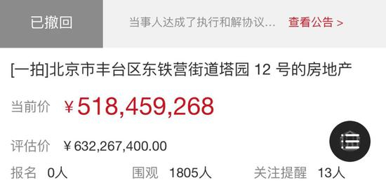 而申请执行人国民信托,也对塔园12号项目拍卖、变卖所得价款,享有优先受偿权。不过,目前在该物业的拍卖页面上,状态显示为“已和解”。