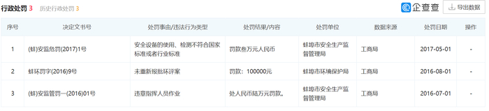 与此同时,今年5月,蚌埠市应急管理局曾进行“双随机一公开”定向抽查,八一化工因“设备设施管理”被行政处罚。