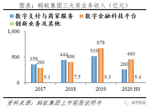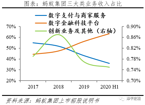 当前蚂蚁集团着力布局三大战略板块,数字支付与商家服务、数字金融科技平台、创新及其他业务。