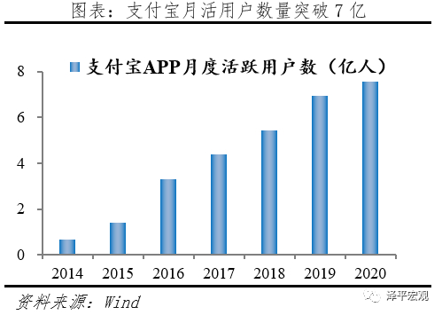 支付宝是第一个爆款产品,作为综合性的流量入口,叠加高频的支付场景为其他金融业务导流,以手续费及客户备付金利息收入为盈利方式。