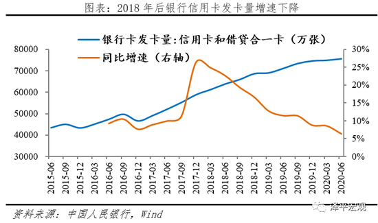 蚂蚁模式发挥鲶鱼效应,传统机构利润份额压缩。以往金融机构凭借牌照优势,利润稳固,当互联网思维碰撞传统金融,形成巨大鲶鱼效应,牌照优势被技术优势颠覆,在各条金融业务线上,蚂蚁均实现后发赶超,分得银行利润和市场份额。以蚂蚁代表的小贷公司信用支付的兴盛在一定程度上蚕食了银行业务,从2018年6月后,银行信用卡和借贷合一卡的发卡量增速持续下滑。