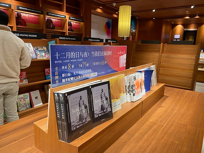 大约是某种悼念,深圳诚品的最后一个月并不冷清。客人们除了纷纷与书店门口的标语“在书与非书之间,我们阅读”合影,还不忘最后再买点什么——当然部分也是因为诚品启动了近乎半折甩卖的清仓活动。